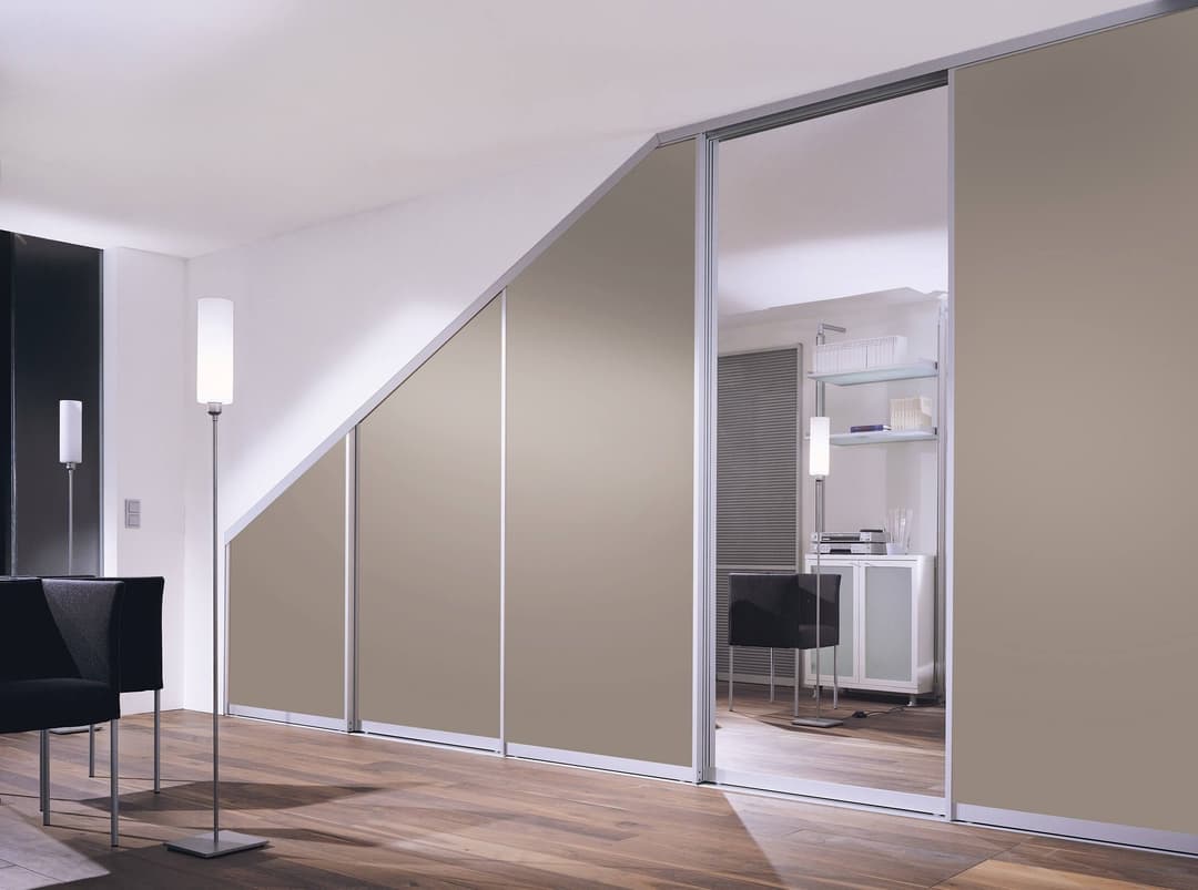 - Falt- und Schiebetüren: Diese Türen sind äußerst platzsparend, da sie keinen Öffnungswinkel in den Raum hinein benötigen und damit nicht an Wände oder Möbelstücke stoßen, sondern entweder kompakt zusammengefaltet oder zur Seite geschoben werden können. Schiebetüren eignen sich außerdem ideal, um einen begehbaren Kleiderschrank einzurichten, sodass keine wuchtigen Schränke und Möbel mehr notwendig sind.
