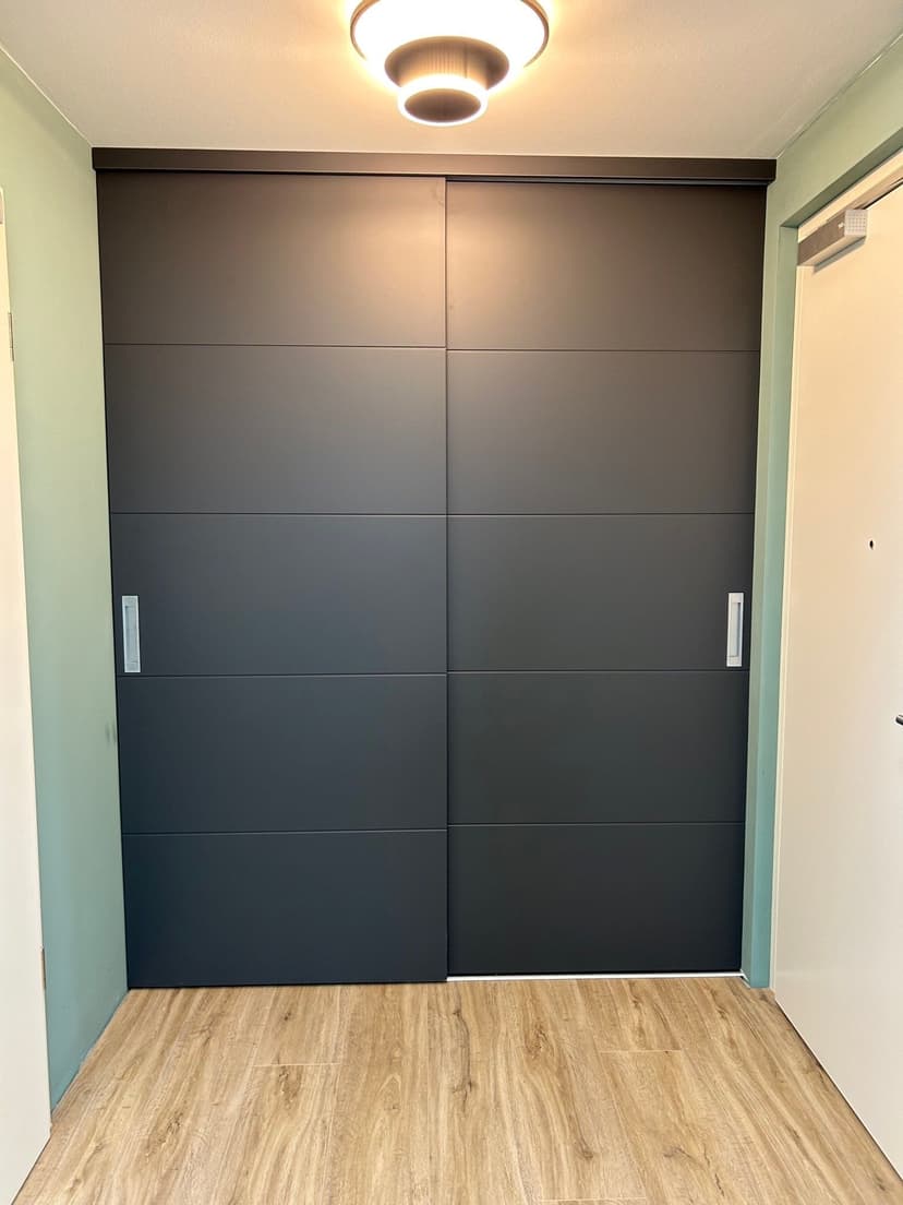 Onyxgraue Holzschiebetüren mit schwarzen U-Profilen