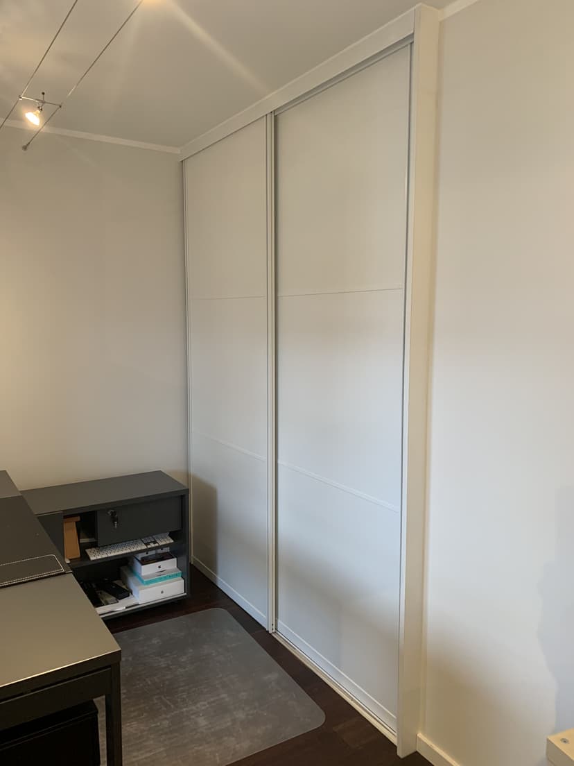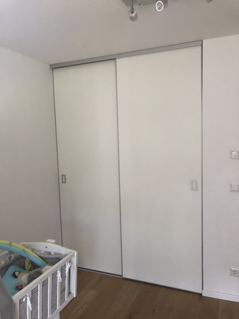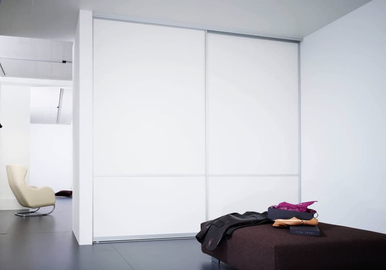 Weiße Holzschiebetüren mit weißen U-Profilen