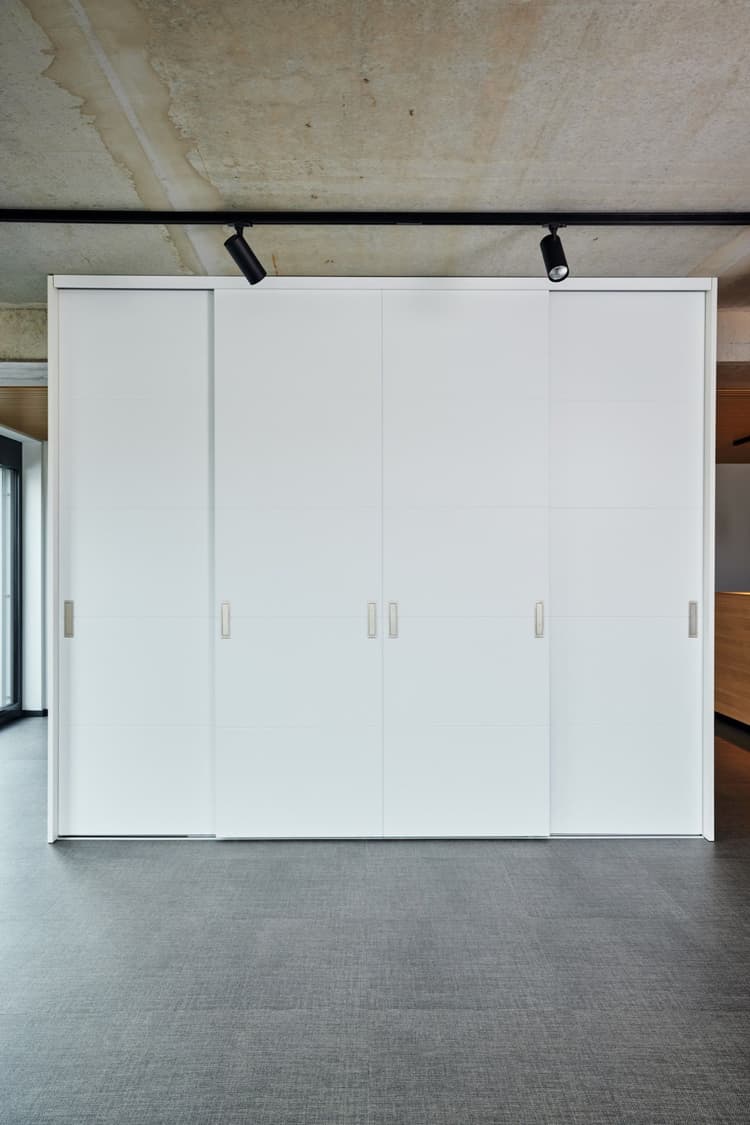 Weiße Holzschiebetüren mit Aluminium U-Profilen