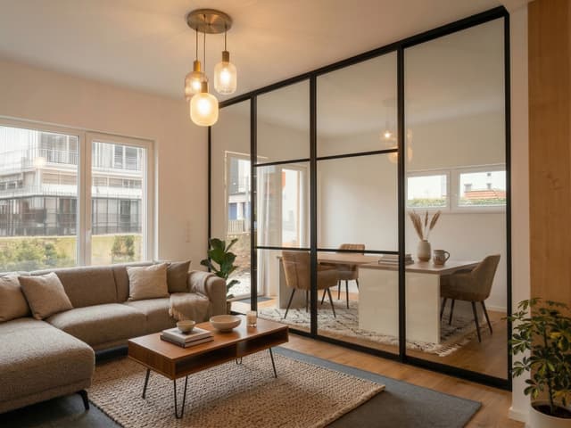 | Inkl. Schienen, Rahmenprofile und Rollen (Optional inkl. Holz- oder Glasfüllung auf Maß) |