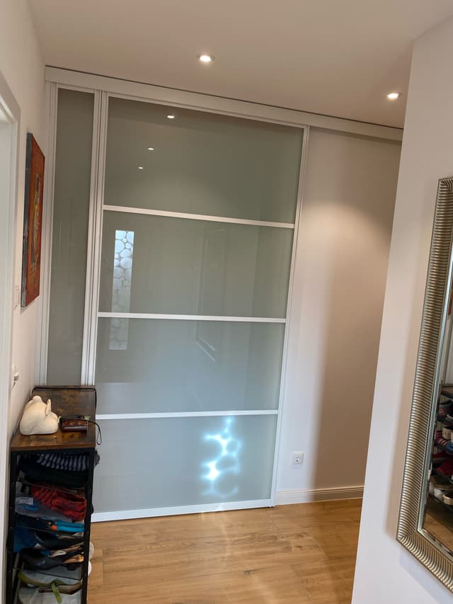 Wir haben für unsere privaten Innenräume eine Doppelflüglige Schiebetür mit Alurahmen und satiniertem Glas inkl. Befestigung bestellt. Alles nur online und mit telefonischer Beratung. 1, 2, Risiko! :-) Es hat alles hervorragend geklappt. Die telefonische Beratung war unkompliziert und angenehm, auf unsere Sonderwünsche wurde eingegangen und wir haben genau das bekommen was wir brauchten. Wir sind sowohl mit der Optik als auch mit der Qualität sehr zufrieden, der Preis ist angemessen und wir freuen uns über unsere neue Durchgangstür. Das Online-System zur Konfiguration ist definitiv das Beste und unkomplizierteste was mir während unserer Planung und Recherche begegnet ist.
