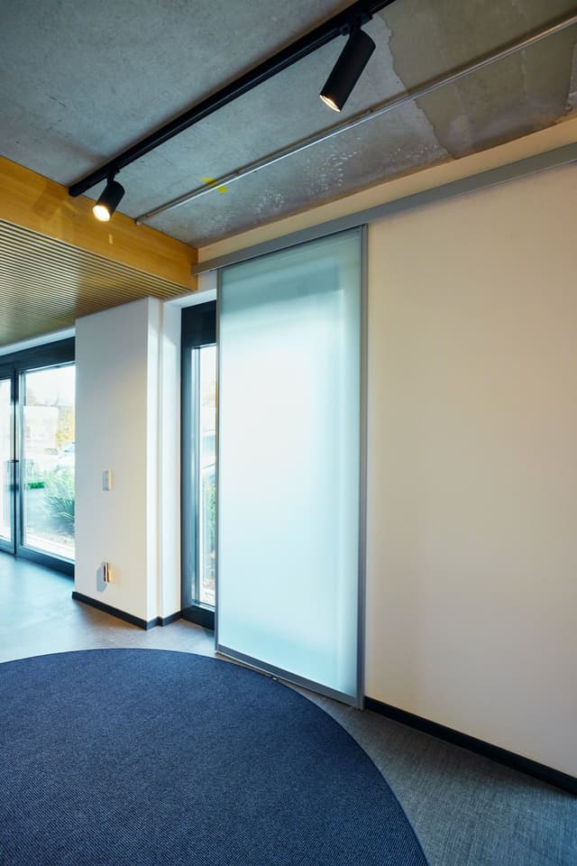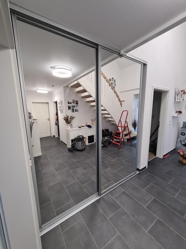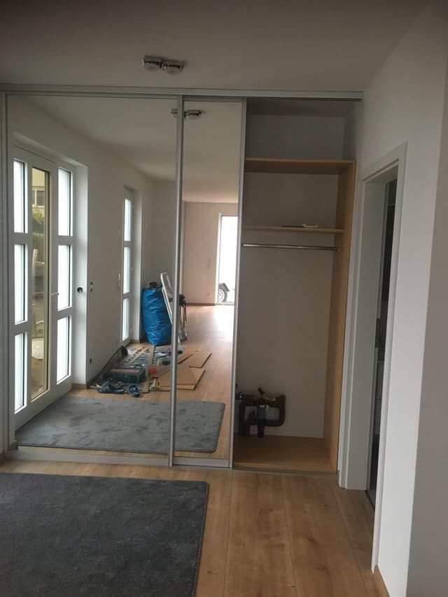 Anschließend werden die Schienen montiert und die fertigen Türen eingestellt.