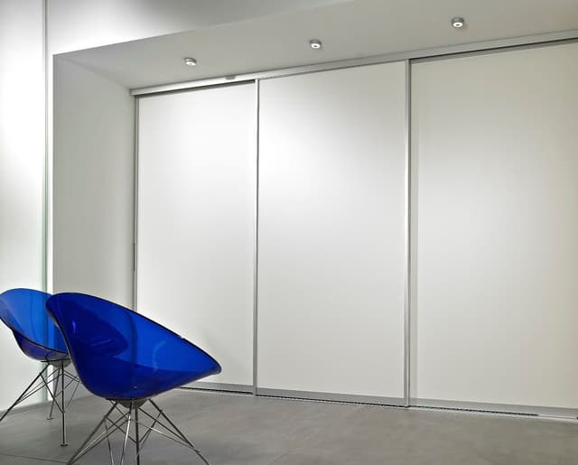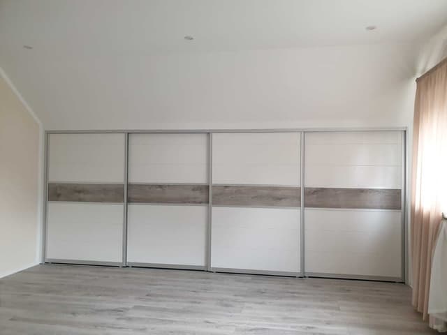 | Inkl. Schienen, Rahmenprofile und Rollen (Optional inkl. Holz- oder Glasfüllung auf Maß) |